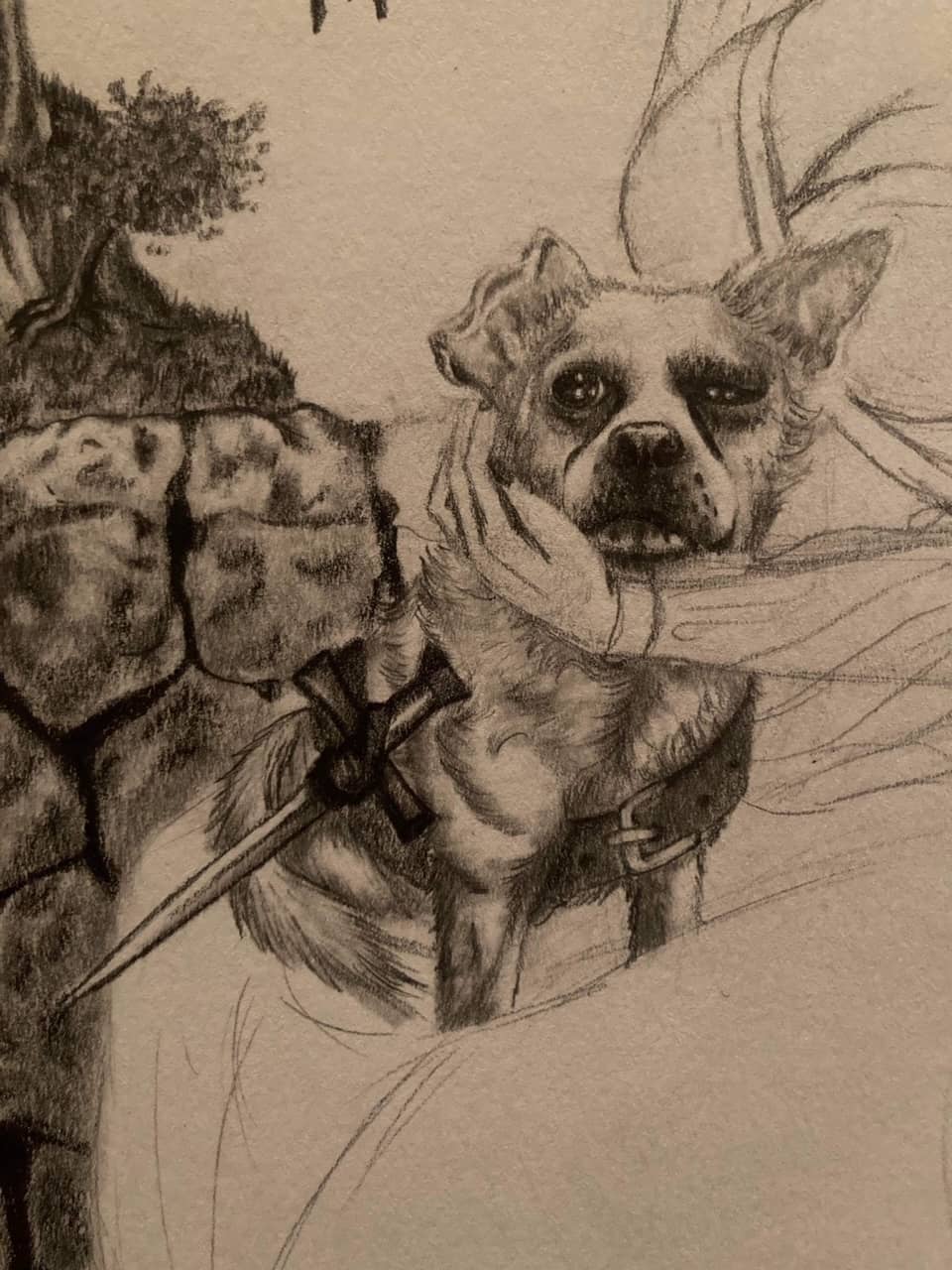 For whatever reason, CJ decided to commission a local artist (and fellow Sherwood Forest Faire enthusiast) to sketch his fiance and their dog Mr. President. He also insisted that the drawing depict them in some sort of fantasy medieval world. Some have called it heartwarming, others downright creepy. What do you think? Thanks to Haley Morgan LeStrange for the masterpiece!
