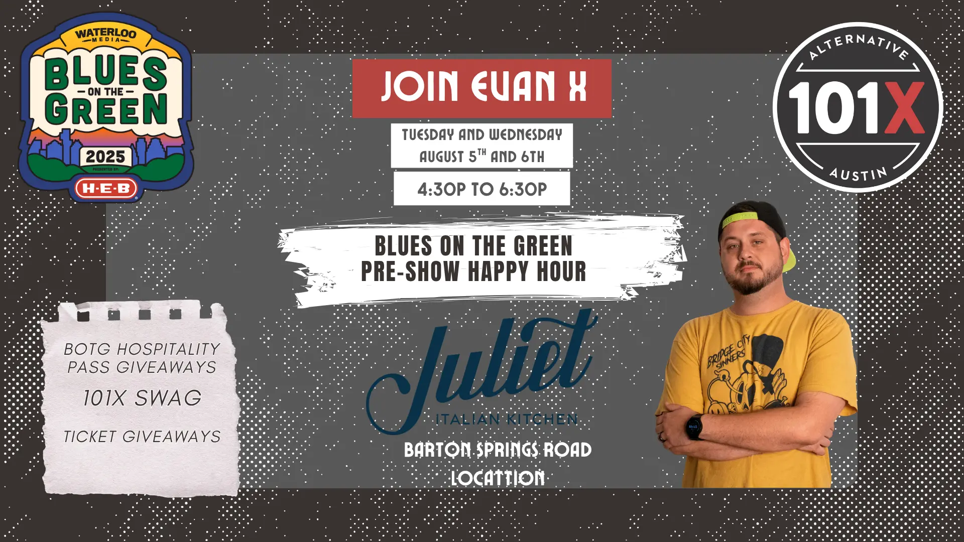 Join EvanX at Juliet Italian Kitchen for a Blues on the Green Happy Hour! Day 2