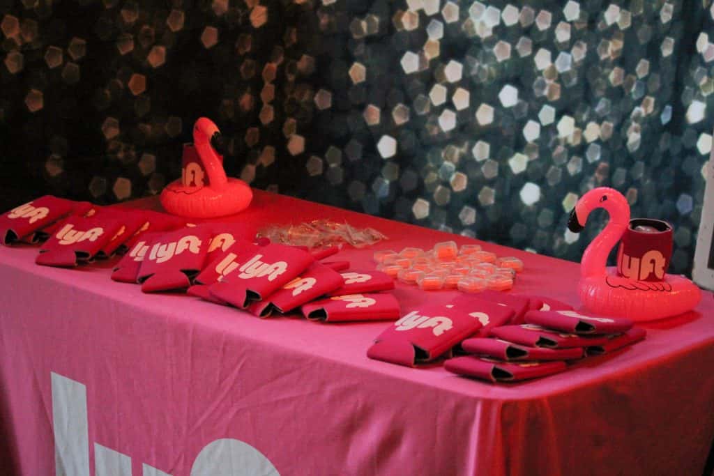 Lyft Table with a bunch of lyft koozies