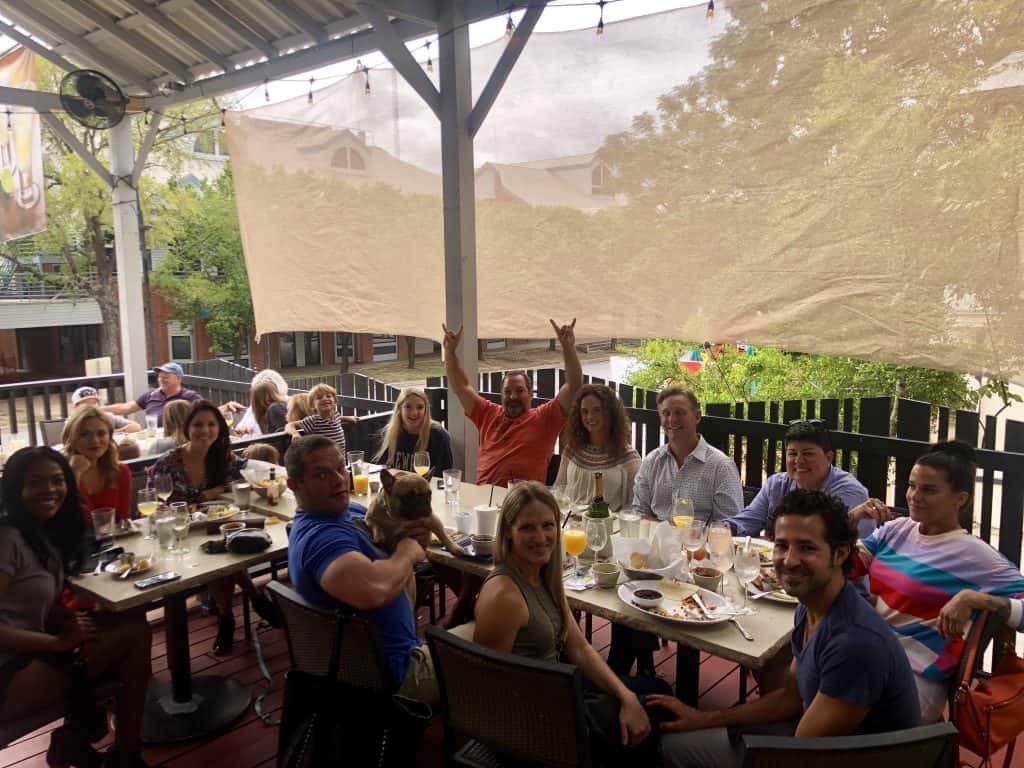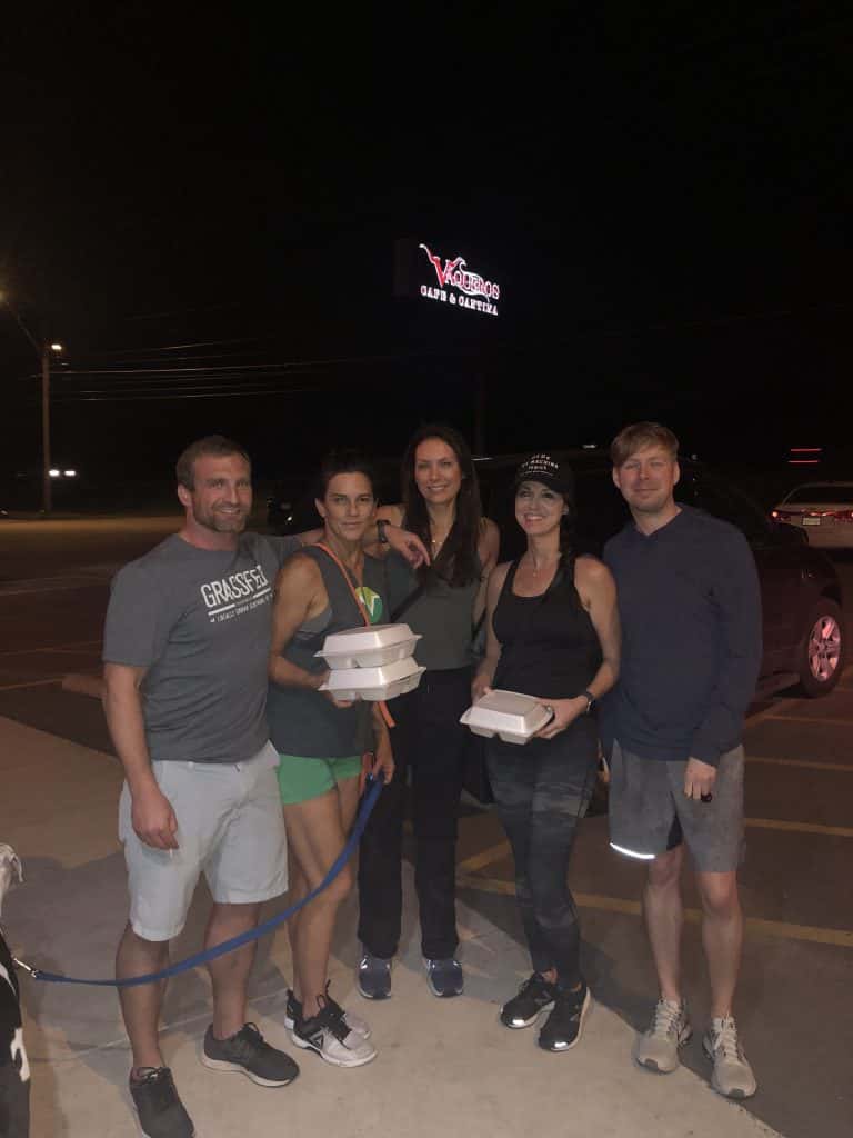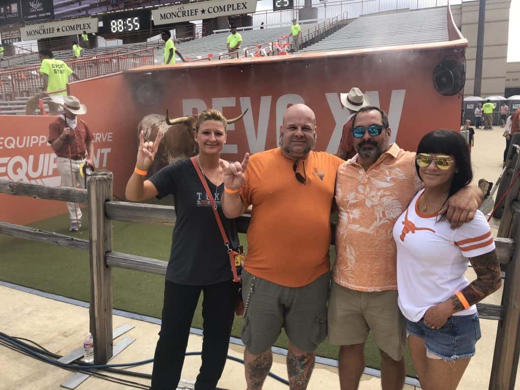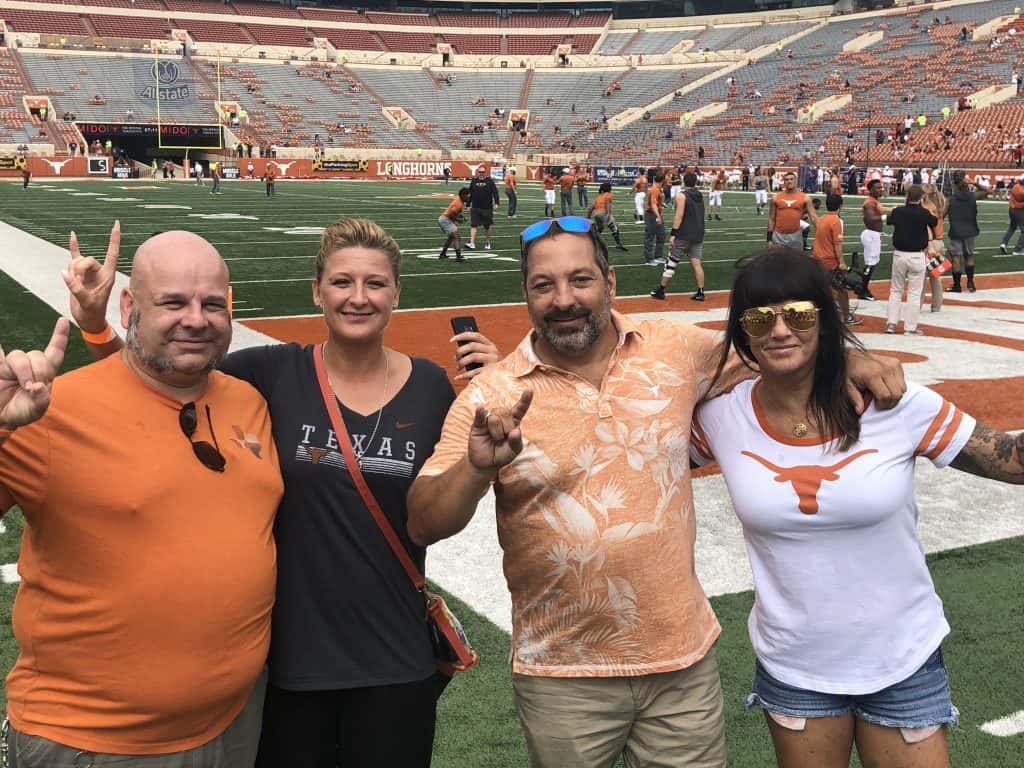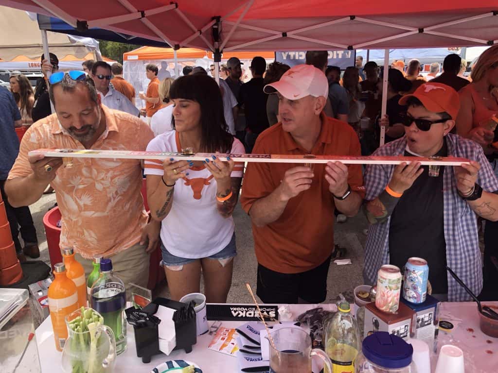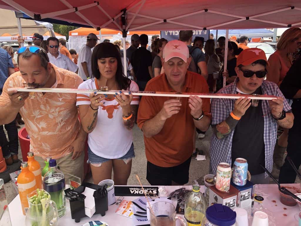 Deb and friends drinking from a Shot Ski at the Texas tailgate.