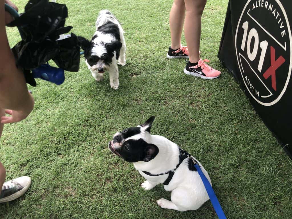 Five Frenchies playing at the Amazon Treasure Truck Pup Fest.