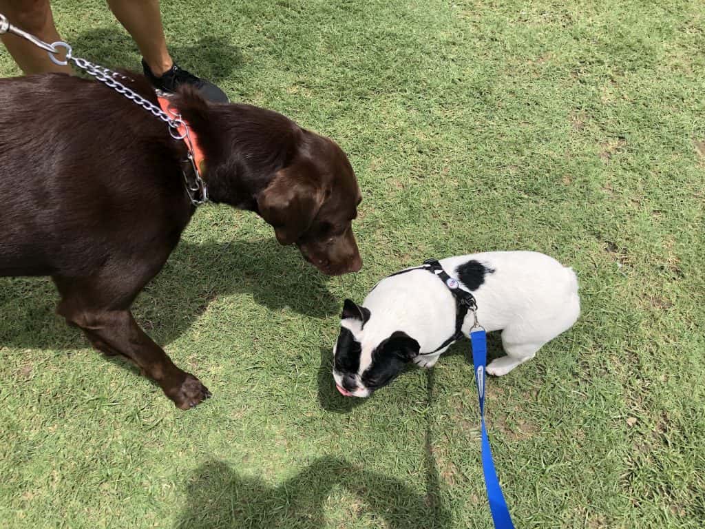Two dogs at the Amazon Treasure Truck Pup Fest.