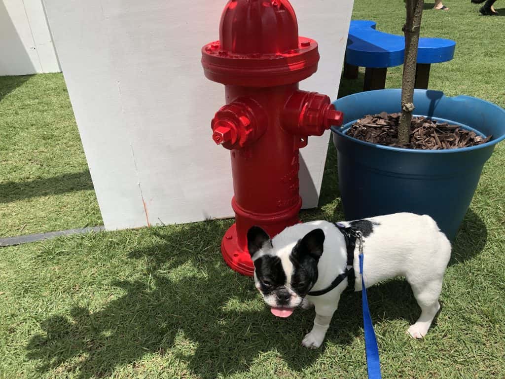 Alfie at a fire hydrant at the Amazon Treasure Truck Pup Fest.