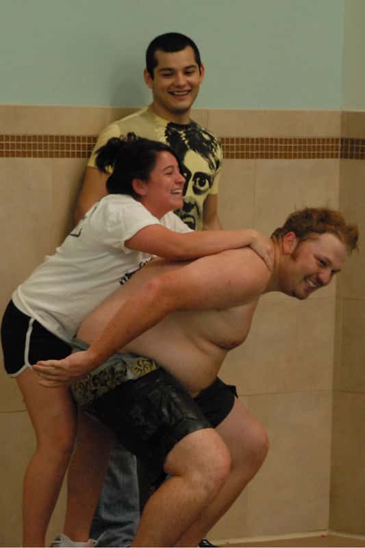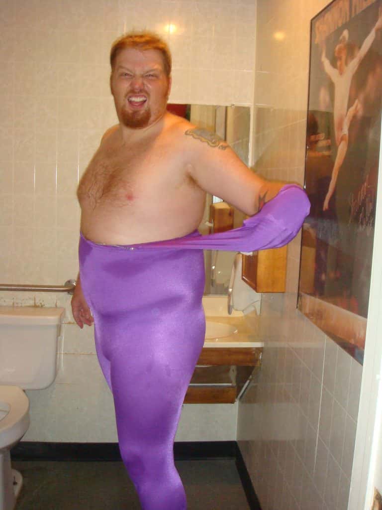 Jason taking off his leotard at the Jason And Deb’s Modern Decathlon in 2008.