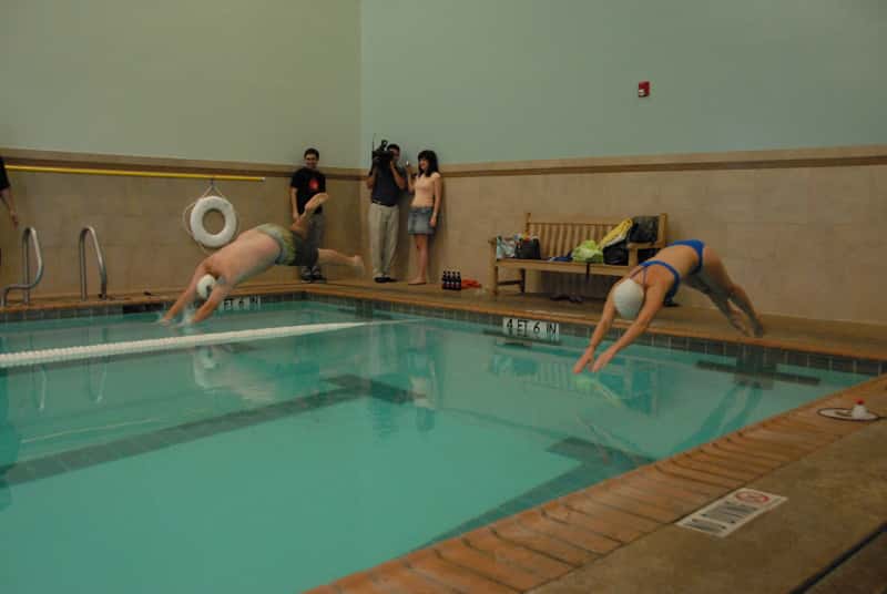 Jason and Deb dicing in the water at the Jason And Deb’s Modern Decathlon in 2008.