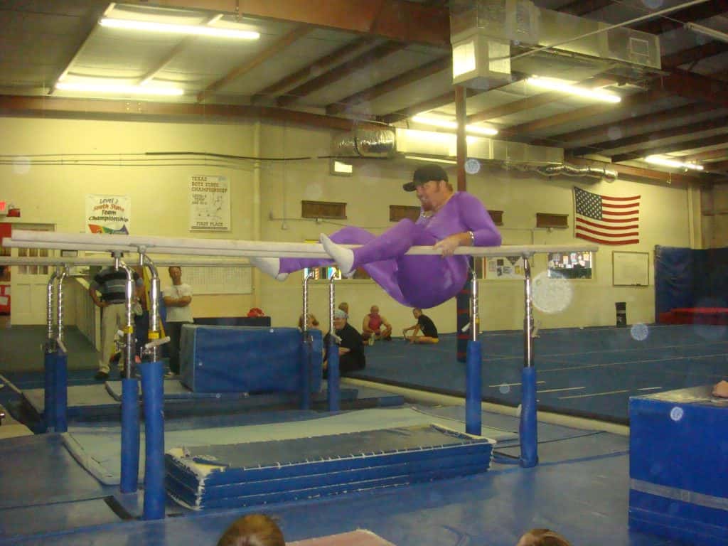 Jason on a balance beam stuck at the Jason And Deb’s Modern Decathlon in 2008.